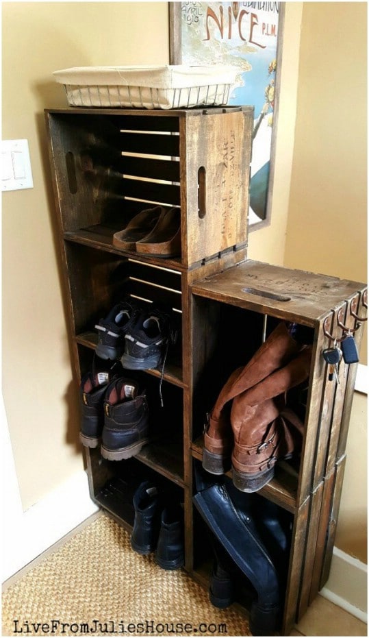 In tight spaces, such as an entryway nook, the following ideas for DIY shoe racks provides a compact yet effective storage solution for shoes of any type, from lightweight sneakers to boots. It’s amazing what a little organization can do for a room. Shoes can take up quite a bit of room on the floor, so make cleaning a breeze and try one of these easy ways to keep your shoe collection under control.