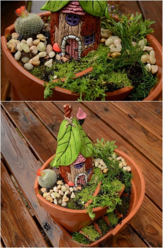 This easy DIY fairy garden is so simple to make and doesn’t take up a lot of space. It’s a fun way to spruce up your deck or patio! A new trend has been developing among gardeners – fairy gardens. These are tiny gardens filled with small beautiful plants, succulents. These DIY fairy gardens are the perfect craft to fill up your next unbooked weekend. Check out these photos of brilliant fairy garden creations