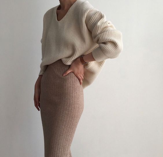 For a polished and professional look that doesn’t sacrifice comfort, pair your knitted pencil skirt with a crisp white button-down shirt. Tuck it in neatly to emphasize your waist, and add a thin belt to cinch it for a more defined silhouette. Complete the ensemble with a pair of nude or black pumps and subtle accessories like stud earrings and a delicate bracelet. This classic outfit is perfect for the office or any formal setting.