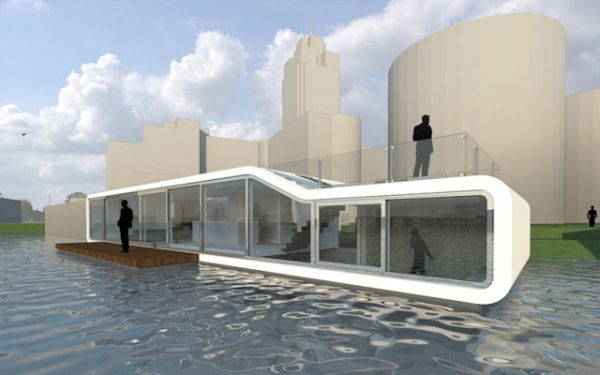 But let’s now get back to projects that actually exist in reality. A nice example to take a look at would be this floating house found on Amstel river, in Amsterdam, Holland. It’s a structure that beautifully combines functionality and minimalist design. It was a project by +31 Architects and it was modeled after the design of traditional floating houses but by using modern methods. It has a total surface of 200 square meters and has two levels. The lower level goes underwater, a decision based on the fact that the maximum height of the house had to be 3 meters, a limit imposed by the local rules.{found onoradearhitectura}.