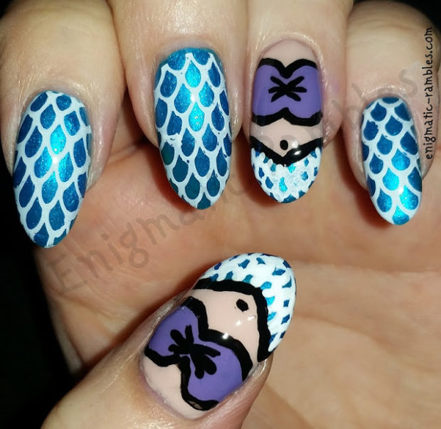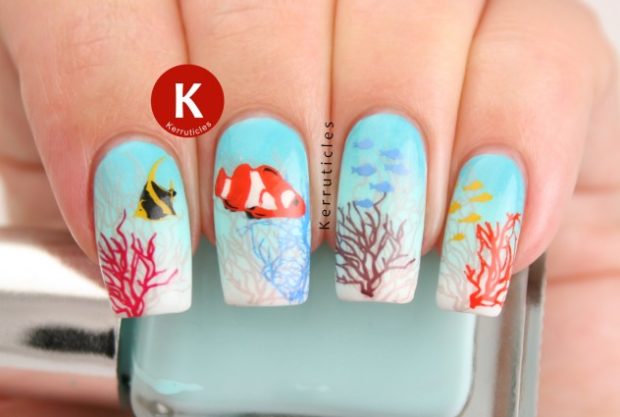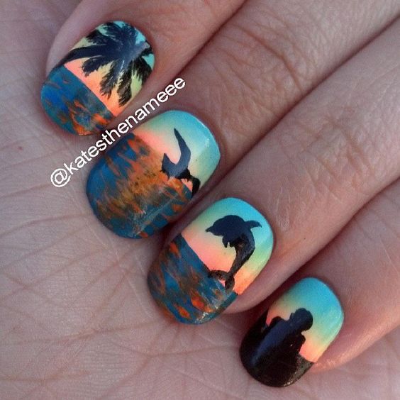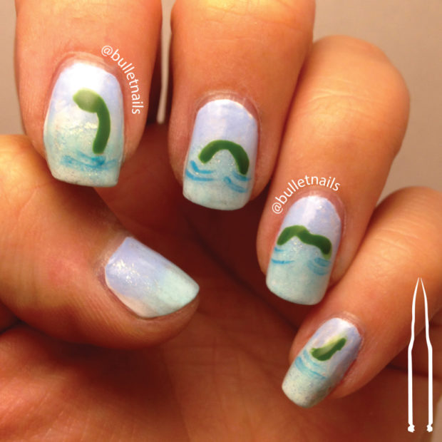 Who could resist those fun colors, gold glitter and seashell accents? The sun is high, the beach is packed and the only thing you are going to want is this nail design. Finding yourself inspired to take a quick dip under the sea? Give yourself an elegantly embellished manicure that the Little Mermaid would love. We went crazy with every nail (and yes went with a more *ahem* editorial length), but you can also just do a flare nail or two instead of the whole shebang. Get details and ideas on the hottest look of the season here.