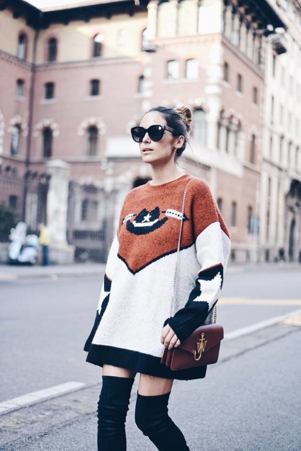 Looking fabulous while staying cozy is always in season. The great thing about the sweater dress is that you can wear it however you prefer, with whatever you want, and whenever you like, in endless textures, patterns and styles, and in countless colors. They’re relaxed and cozy and they make you want to snuggle up. And just by changing up your accessories and footwear, you get tons of mileage out of them. Here are 15 ways to style a sweater dress.