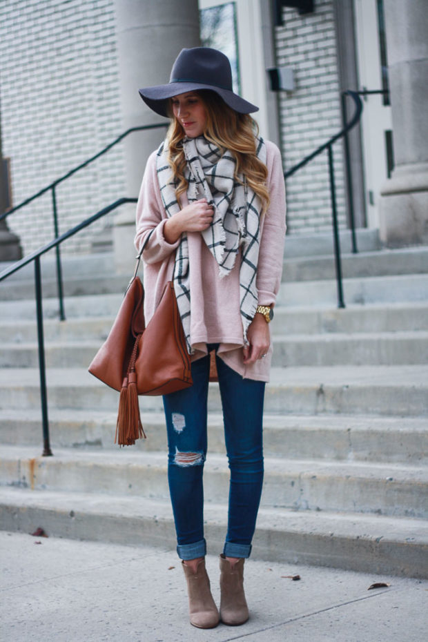 For some outfit ideas on how to get away with wearing pink sweater and still look like a grown-up, click through the gallery above to see how street style stars wear the shade! Everyone gets stuck in a style rut sometimes, whether it’s wearing the same pair of boots all Winter or wearing the same black skinny jeans week after week. As we dig into all those cozy sweaters, one question comes to mind: what the heck do we wear them with? The obvious answer would be jeans!!