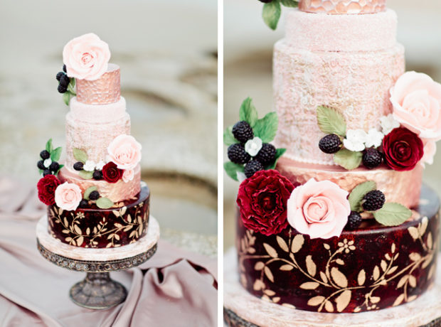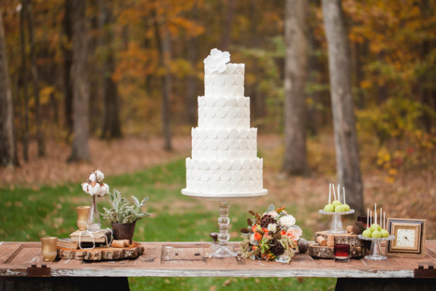 Finding a fall wedding cake that is seasonal and stylish is surprisingly simple. From pretty confections adorned with berries and blooms to burlap-draped tiered cakes, there’s an autumn-inspired wedding cake for every type of bride and groom. With its clean, crisp air and warm, fiery color scheme, autumn is a lovely time to get married. And with an abundance of cool-weather motifs and seasonal flavors, fall wedding cakes can be both beautiful and tasty. The fall wedding cake need not depend on the actual leaves of the autumn, they can be decorated with beautiful leaves of fondant and flowers of icing. A skilled cake maker can transform fall themed wedding cakes into a work of art. Some of the fall cakes depicted below represent the high point of wedding cake artistry.