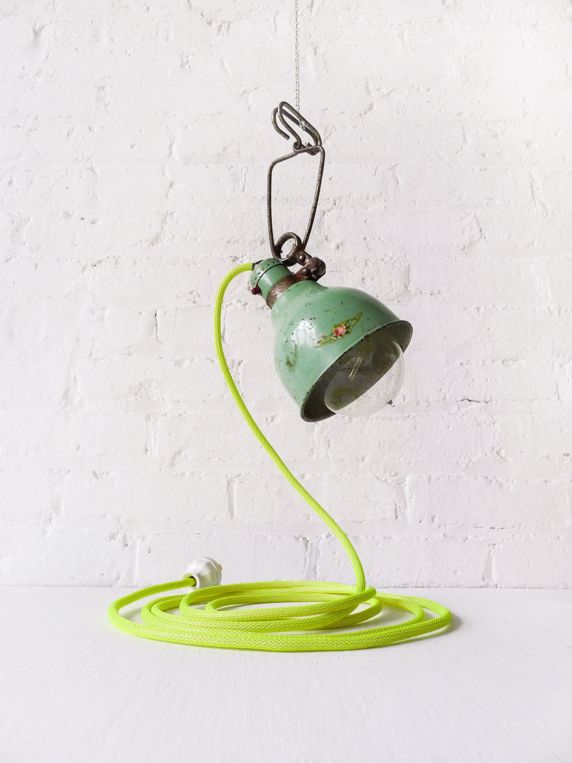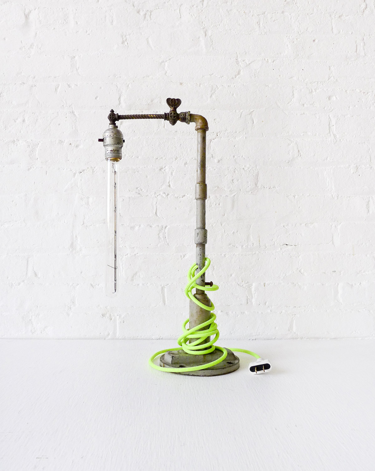 Pope Pipe Industrial Lamp with Tungsten Tubular Bulb and Neon Green Yellow Cord