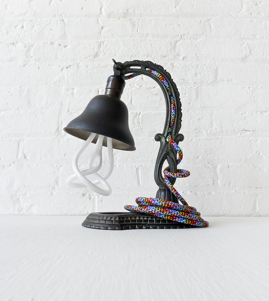Antique Cast Iron Table Lamp with Rainbow Color Cord
