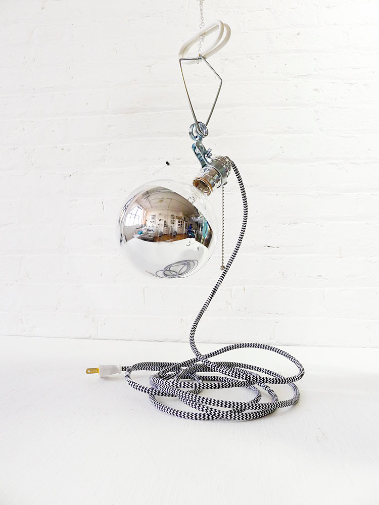Giant Silver Bowl Clip Clamp Light with Zig Zag Cord