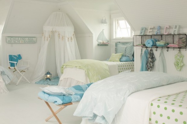 On the following photos we present you 18 amazing kids bedroom designed in beach style that are ideal inspiration for designing your kid’s bedroom in your beach house or in your beach cottage. These kids bedroom design are ideal and for any kids bedroom even if you don’t live by the beach. Because summer is perfect time for designing and decoration every space in your home in beach style so you can fell summer atmosphere and start planning your summer vacation.