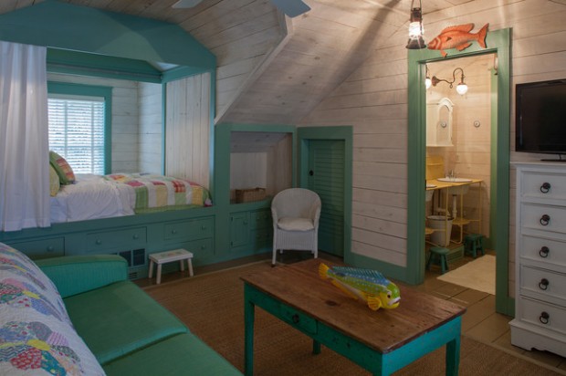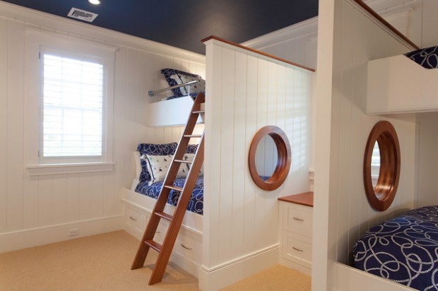 Kid’s bedroom in beach style should be designed and decorated with materials and stuff in light and pastel colors that symbolize the summer and the sea. You can also use ships like inspiration for kids bedroom design and add some elements in the kids bedroom that will make them feel like they are sailing.