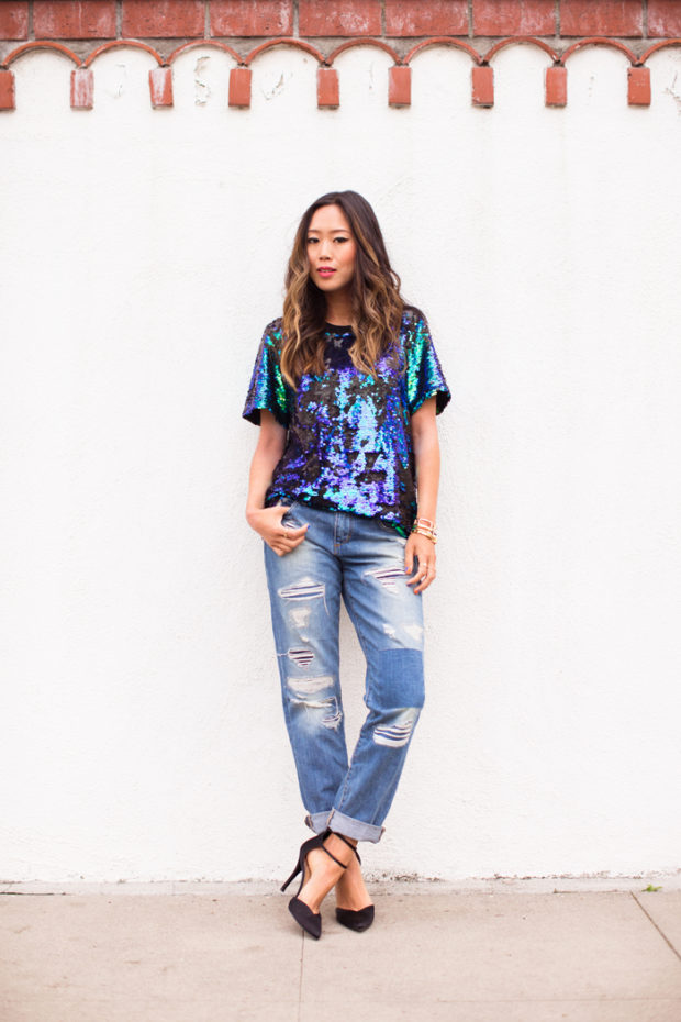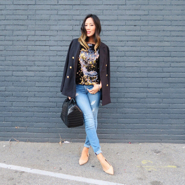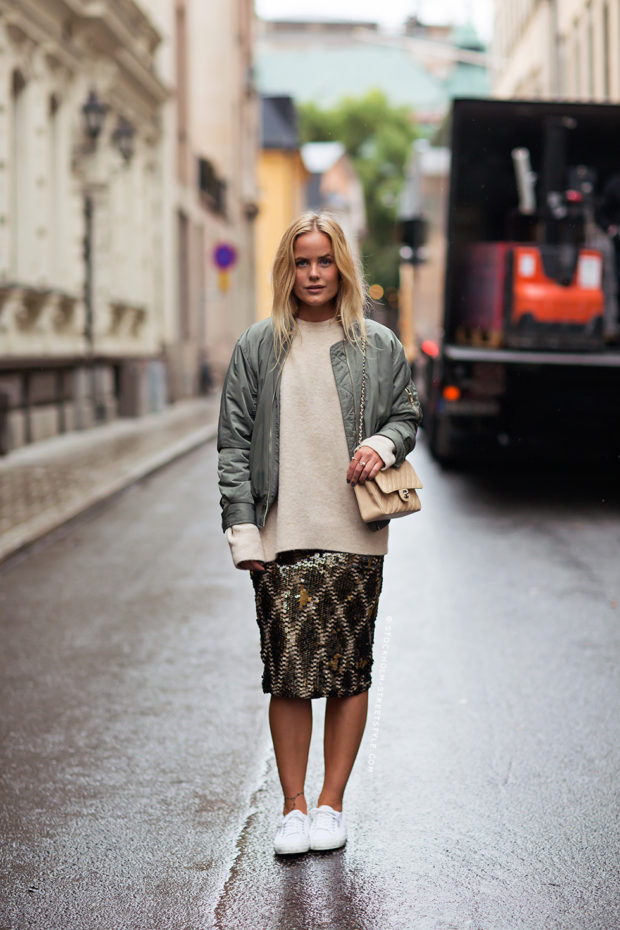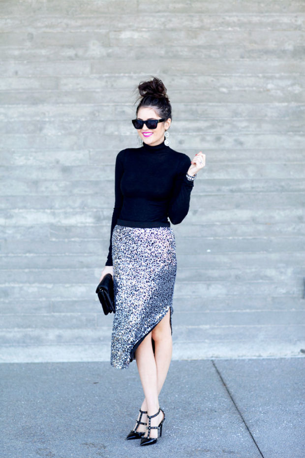 Whether you opt for a pair of trousers in the material or style your shiny skirt with a casual top and flats, it’s time to jump headfirst into the holiday-ready trend. Jump-start your sequined skirt , pants and dress styling with the 18 outfits below. In this post you are going to find amazing street style images of girls/ ladies and women who appear in the streets and special occasions wearing various color starting from black, gold, silvery to green. Between glitzy grandmas, pageant queens, Vegas bachelorette parties, New Year’s Eve clichés, and the 1980s, sequins often get a lousy reputation. Sure, they’re shiny and jazzy, but they don’t have to be tacky—or hackneyed. In fact, sequins can look extremely chic when styled in a modern way. The secret? Subverting expectations.