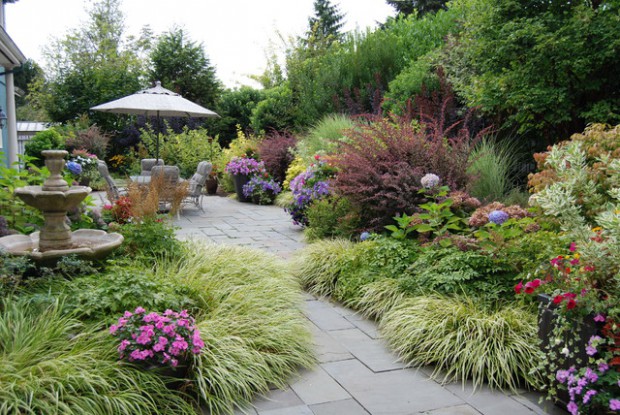 Just like interior rooms, patios benefit from seasonal spruce-ups, new furniture arrangements, and fresh crops of accessories. Take your redesign cue from these 18 patios that illustrate inspirational, on-trend, and achievable redesign strategies. A good planting plan can turn hard space into a natural environment for outdoor living. It can carry your interior schemes into the landscape with color and fragrance. Planting solves problems with beautiful living things. It offers a changing face with the seasons. A poorly designed planting plan does little for the quality of the space, increases maintenance, compromises square footage and negatively impacts your enjoyment of the patio. Create a plush patio or deck with container gardens and perimeter plantings that accentuate the space.