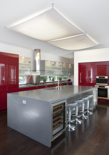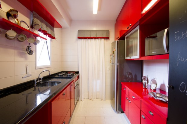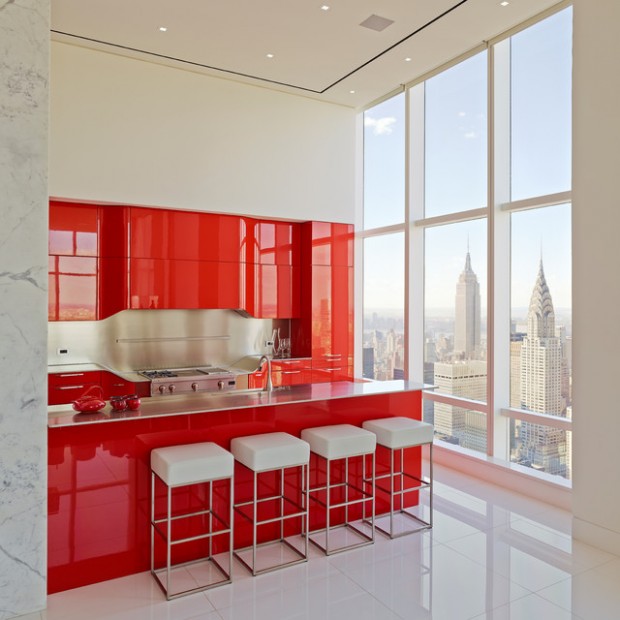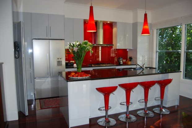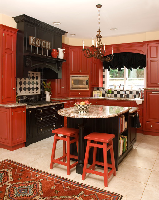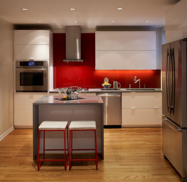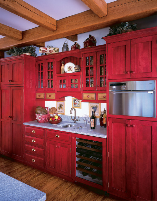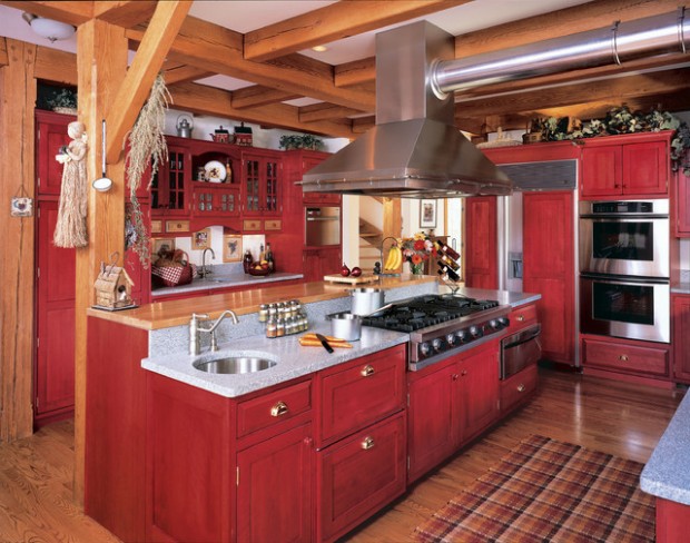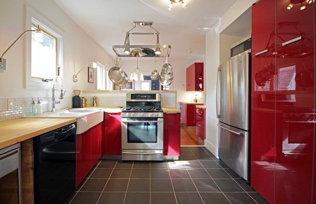 Red colors bring vibrant energy and striking accents into kitchen design and decor. Red colors are exciting and powerful. They add fun to functional interiors designed for cooking. Today we will be showing you 19 pictures of kitchen designs with a dash of red here and there to accent the room. Red is a signal color, with a strong personality and attraction potential. Red is also thought to stimulate hunger — which is why those very stylish restaurants that wow us with their stunning decor use these simple rules of color psychology in their design. From retro to rustic, spice up your kitchen with one of these decorating ideas in shades of red.