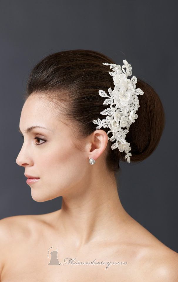For perfect bride look second most important thing after the wedding dress is the hairstyle. Adding some unique hair accessories in white colors made with lace and pearls will make you look like a princess.