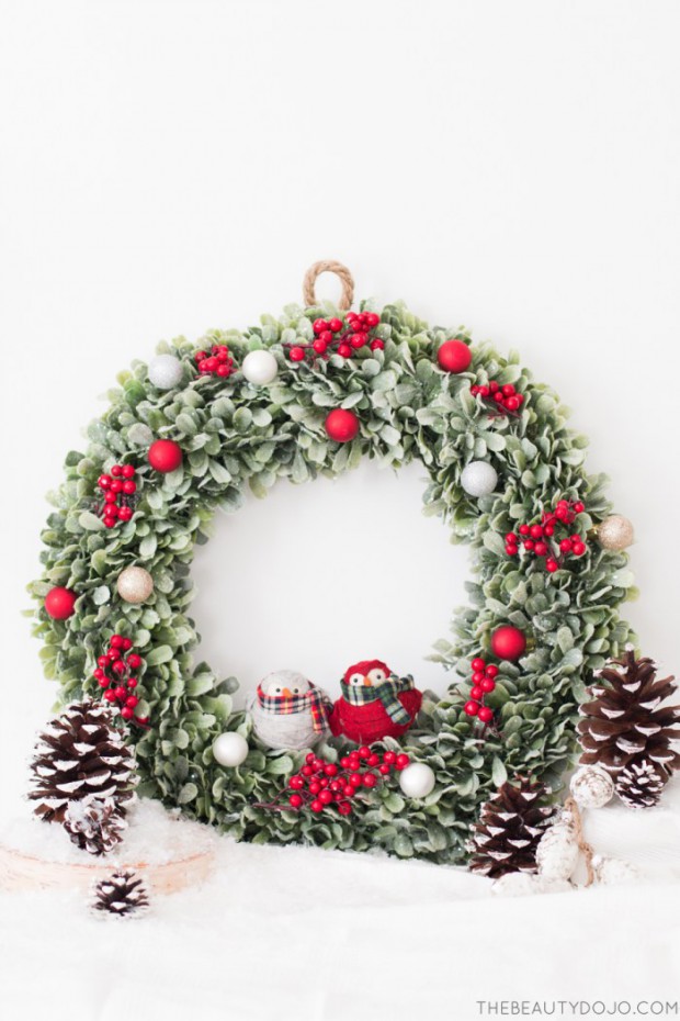 Christmas wreath is a very lovely symbol of holiday. Want to be different? Why not make a simple and fun one by yourself at home? Maybe you have seen lots of DIY wreath ideas, but if you want more creative ideas, here is your best choice. These super-festive designs will make any door sparkle. Take a look!