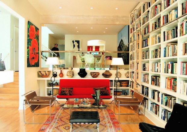 We already showed you some ideas for home library without a dedicated room. Now we want to be more specific and show you a large gallery of library design ideas a living room. There are many ways to do that which mostly depends on your living room size and amount of books you want to store there. You can simply use bookcases, wrap your TV in shelves with books, put books into a room divider if it has shelves, and so on. Gather inspiration from some of our favorite pictures of libraries. Whether the style of your home is traditional, modern, or somewhere in between, we’ve got decor for everyone.