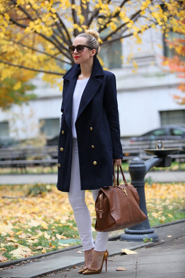 Winter is all about being comfy, and playing with layers to keep it warm. One of the most important things about winter fashion is finding the right coat. Classic navy blue coat can make you feel impossibly chic every time you put it on. It’s definitely worth to invest in a navy coat – you can easily combine it with everything you own, from work clothes, to jeans, to a mini dress and tights. When buying coat it’s very important to look for versions that are timeless—after all, it’s going to be the centerpiece of your outfit. Choosing the right coat can make you look perfect every time you go out. Don’t be afraid to get creative with an old coat you have in your closet by swapping out the buttons, or having your tailor change the lining. Here we present you 23 classic navy blue coats that look great.