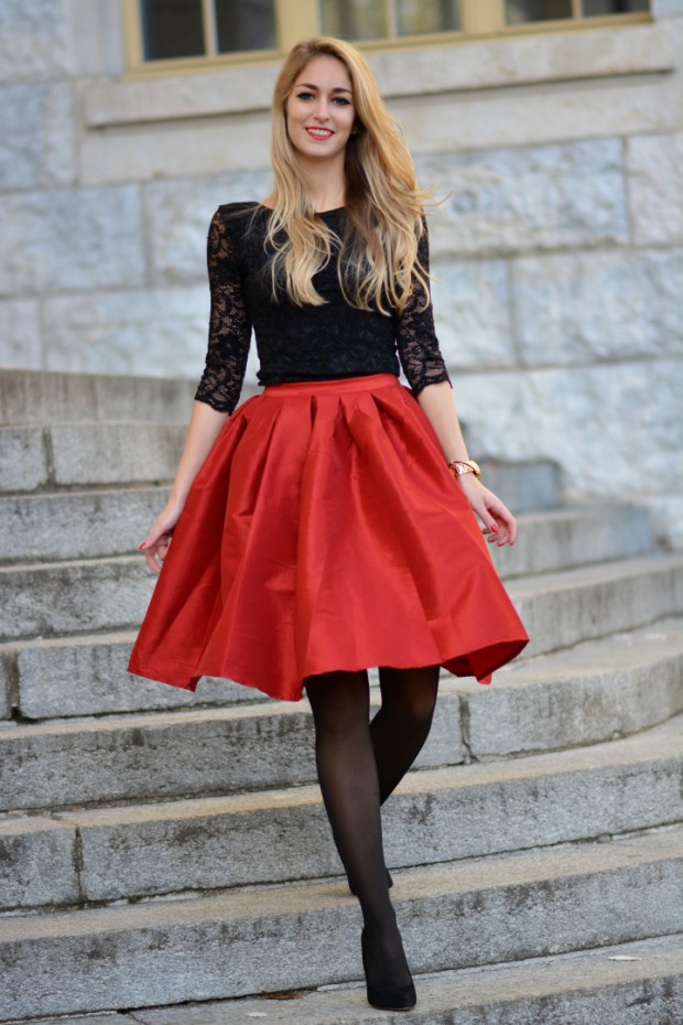 A sweater and skirt is the simplest possible outfit you can put together during winter months. When wearing a skirt and sweater together, you can play around with your proportions, prints, layers and fabrics, yielding completely different looks each time. From grunge-inspired looks to polished outfits, there are many variations on the combination. Wearing these two pieces together with boots or your favorite heels will give you a trendy look for this winter and by adding some good accessories like a jewelry or a scarf you can complete your street style outfit combination. We gathered 28 outfit ideas that will serve you as inspiration for your next outfit – no matter if you choose just a plain, an oversized, a cropped or a turtleneck sweater. Also there are various skirts presented, like short, midi, a tutu or a pencil skirt.