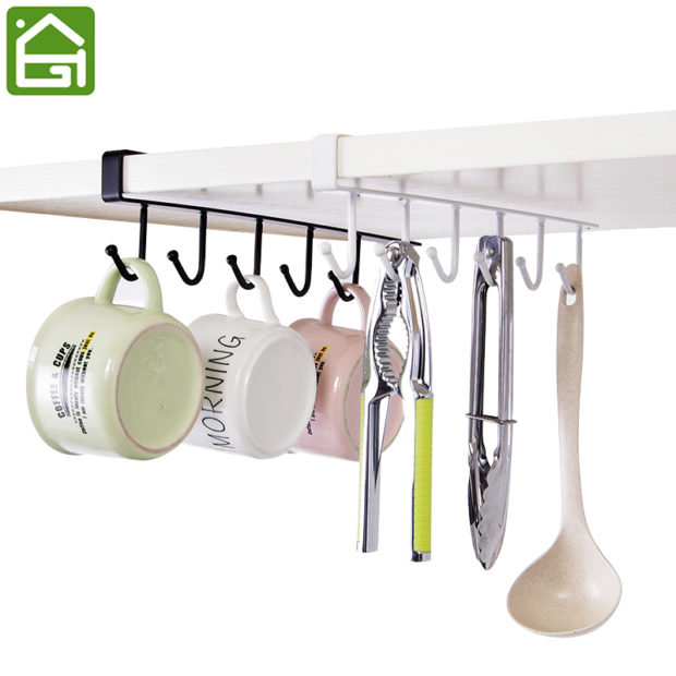 If you lack space in your kitchen’s cabinets, then you can go buy some hooks from the nearest store and attach them under the cabinets.