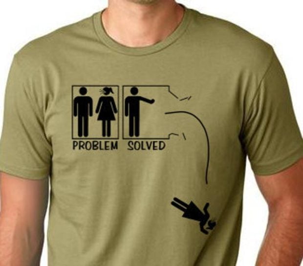 - This “Problem Solved” t-shirt on Etsy shows a party getting pushed off the edge of the shirt