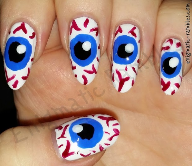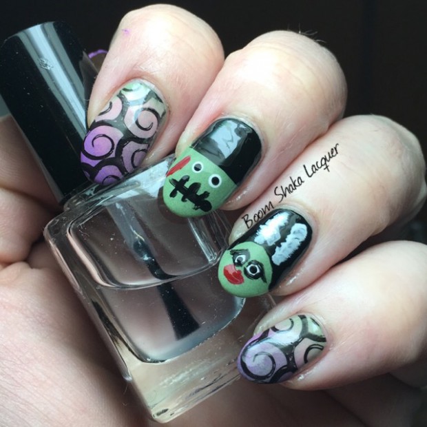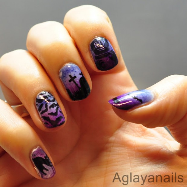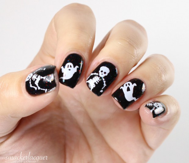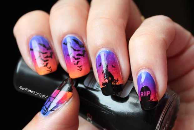 Halloween nail art is this year’s big Halloween trend… Legions of avid Halloween-ers are painting their nails with cool (sorry, scary) Halloween designs; Ghosts, pumpkins, haunted scenes, monsters, skeletons, spiders. Check out these seriously spooktacular nail art designs — plus, below every photo there is a link that will show you how to recreate them just in time for Halloween. These fun nail art ideas just might show up your costume.