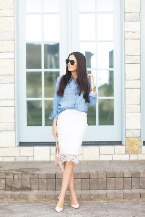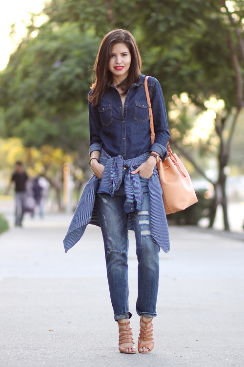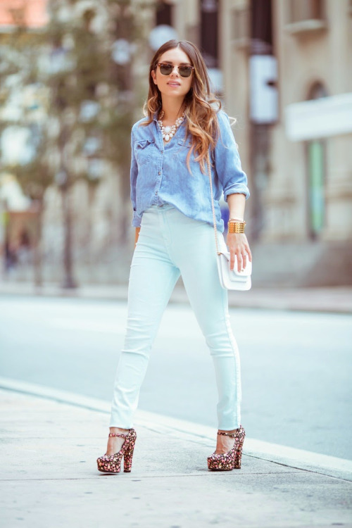 If you don’t already have one, go out and pick up a basic denim shirt. Seriously. Do it now. During the fall, there’s nothing more classic, or more comfy. Learning how to wear a denim shirt is one style trick you can use to create a versatile wardrobe.  Denim shirt is often on lists of “classic pieces you must own”. The denim shirt is a classic, versatile wardrobe staple that can look gorgeous in combination with so many fashion pieces. It is great in casual combinations, but also can look beautiful elegant combinations. For inspiration for outfits with denim shirt check out following outfit ideas.