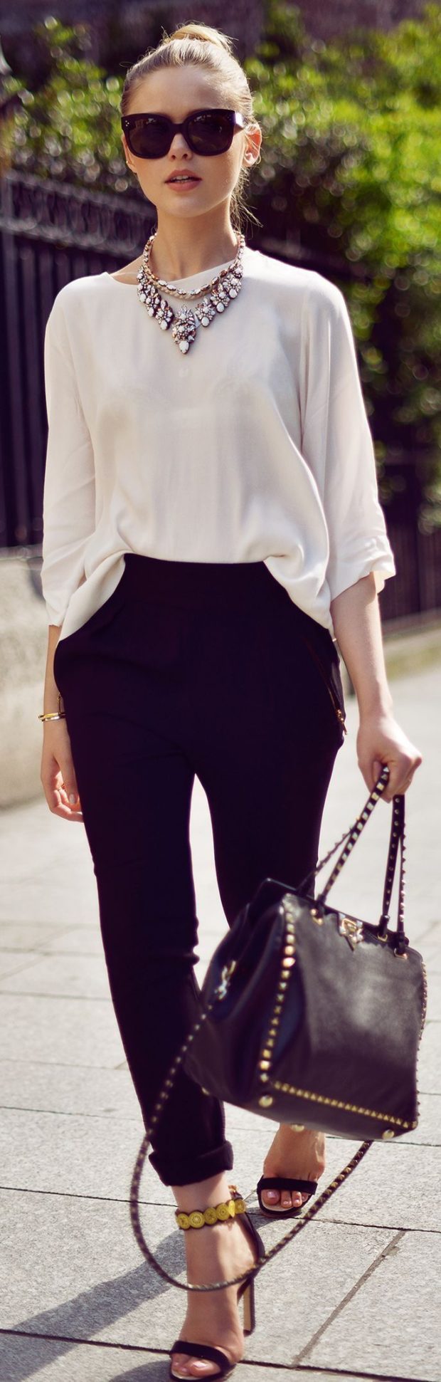 Black trousers are the most represented item in professional outfits and we are ok with that but from time to time you can include a different color to break the monotony. A good tailored blazer is must have piece for this type of occasions.