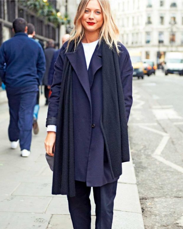 You may think that black and navy are colors that don’t match. For a long time, it has been believed so. Nothing could be further from the truth. Combining both colors can give rise to a very elegant look with a sophisticated touch. Here we give you an idea. Pair a masculine navy blue coat with black chinos and black patent leather shoes. You will not regret it!