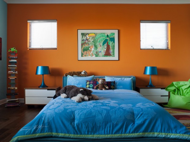 If you are planning to make some big changes around your home and make your living space more unique an extraordinary then check out the following great interiors with one or more orange walls. You can use them like inspiration for your home decor project.
