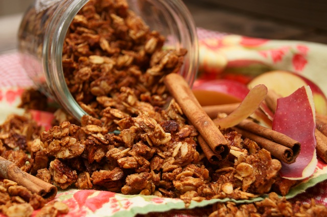 Granola is a foundational food; there is so much you can do to spice up your granola experience! With granola as a great breakfast or lunch choice, you want to reap all the health benefits while mixing it up from day to day. Most of these homemade granola recipes have eight ingredients or less, and you probably already have most of them lying around your kitchen—like oats, coconut oil, honey, or brown sugar. Peanut Butter Granola from Peanut Butter Fingers Homemade Coconut Oil Honey Almond Granola from Lovely Little Kitchen Skinny Dark Chocolate Chia Granola from Natural Chow Slow Cooker Salted Caramel Almond