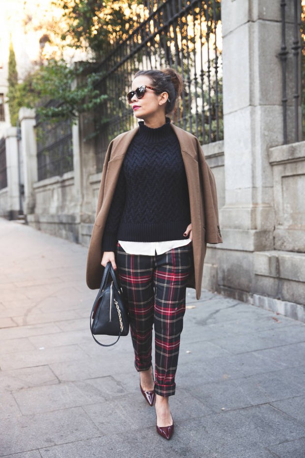 Tartan is a plaid textile design and has Scottish origin. It consists of stripes, of different width and color. You can wear tartan shirts, pants and coats. If you don’t like to go into extremes than you should wear tartan scarf because by adding this to your outfit you will have trendy look. Tartan goes well with dark jeans and chunky sweaters. Chunky knits and plaid are essential layering pieces. Let your plaid shirt stand out under a bold sweater in one of the same hues. If you don’t want the look to skew preppy wear it with relaxed jeans, luxe leopard pumps, and classic jewelry. Plaid pants are tricky to pull off and the best tip that we can give you is to wear them with simple pieces. Keep them the focus of your outfit. Try balancing a pair of wide-leg plaid pants with a white tee and pointed pumps. And as we  mentioned, if you don’t want to experiment but you love tartan, you should accessorize your outfit with plaid scarf. Look for colors like red, dark green, navy, and a few neutrals so it goes with many outfits. You can wear it on weekends with simple jeans and a tee. For more outfit inspiration take a look at the following 27 tartan outfit ideas.