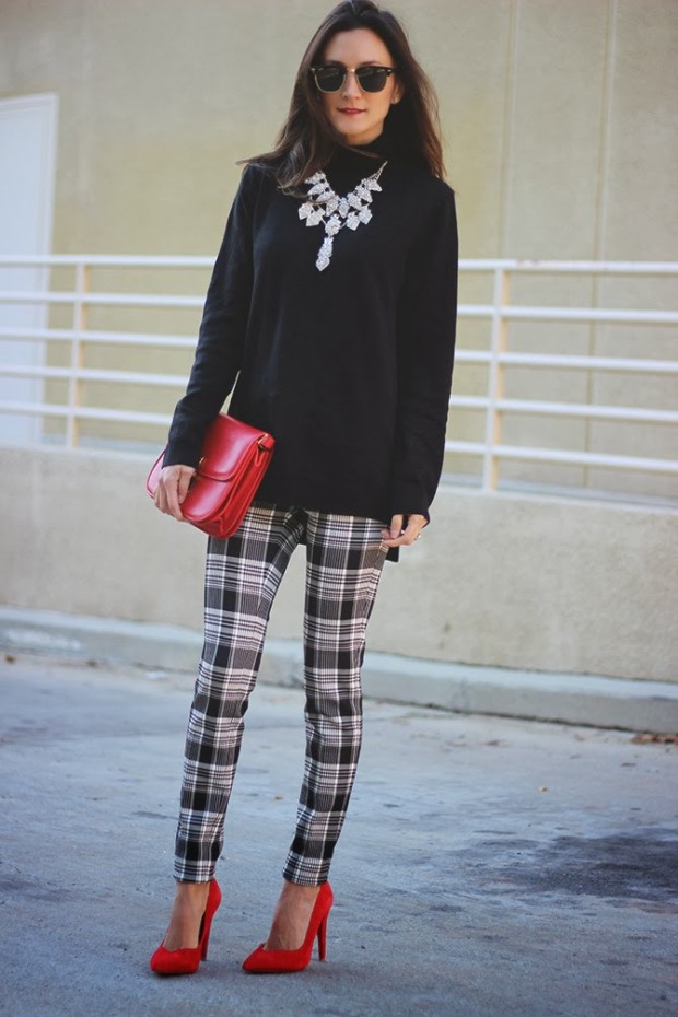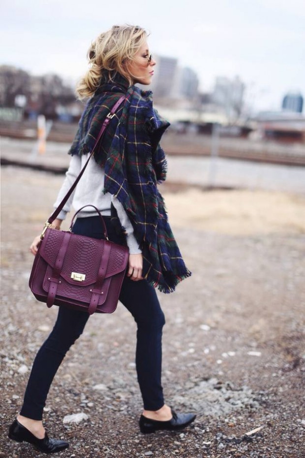 Tartan is a plaid textile design and has Scottish origin. It consists of stripes, of different width and color. You can wear tartan shirts, pants and coats. If you don’t like to go into extremes than you should wear tartan scarf because by adding this to your outfit you will have trendy look. Tartan goes well with dark jeans and chunky sweaters. Chunky knits and plaid are essential layering pieces. Let your plaid shirt stand out under a bold sweater in one of the same hues. If you don’t want the look to skew preppy wear it with relaxed jeans, luxe leopard pumps, and classic jewelry. Plaid pants are tricky to pull off and the best tip that we can give you is to wear them with simple pieces. Keep them the focus of your outfit. Try balancing a pair of wide-leg plaid pants with a white tee and pointed pumps. And as we mentioned, if you don’t want to experiment but you love tartan, you should accessorize your outfit with plaid scarf. Look for colors like red, dark green, navy, and a few neutrals so it goes with many outfits. You can wear it on weekends with simple jeans and a tee. For more outfit inspiration take a look at the following 27 tartan outfit ideas.