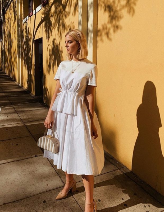 Now that temperatures are soaring well above 90 degrees, the age-old question of “What does one wear in this type of heat? And the answer is: the perfect dress style to beat the heat but still look stylish. You might think that less is more when it comes to summer dressing—less fabric, less skirt, etc. But I’ve found that this length actually provides more breeze and movement, and prevents uncomfortable sweat and sticking; plus, you don’t have to worry about your dress riding up, or having sweaty limbs stick every time you sit down. You don’t need to overembellish, either: Add sneakers for daytime, flat sandals for work, or heels for an evening out.