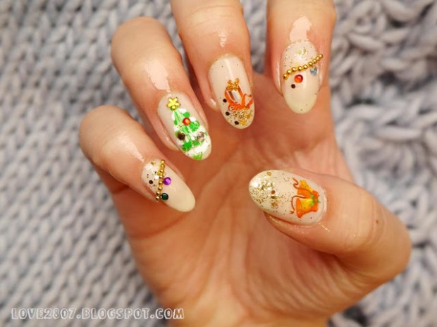 We all are waiting our big following holiday Christmas and Christmas Nail art is a great way to get into the season. Do we even have to talk about Christmas nail art inspiration? Glittering golds, stunning reds and lush greens, Christmas tree, Snowman or even Santa will wake up the Christmas spirit inside you and the people around. Of course bows and ribbons are inevitable part of every Christmas and they should also be inevitable part of your nail art design for this season. Here you can find pictures which will inspire you, but feel free to express yourself in unique way. Enjoy in the most beautiful time of the year! Ho-ho-ho