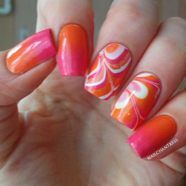 Water marble nail is a nail art technique consisting of dropping nail lacquers into clear water, creating a pattern on the surface which is then transferred to the nails. Water Marble Nail Art is one of the most demanding nail art techniques, but also the one with the most amazing results.