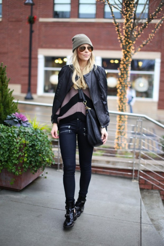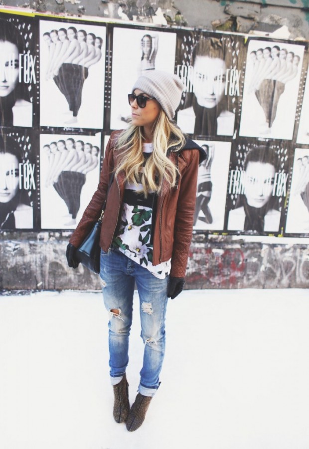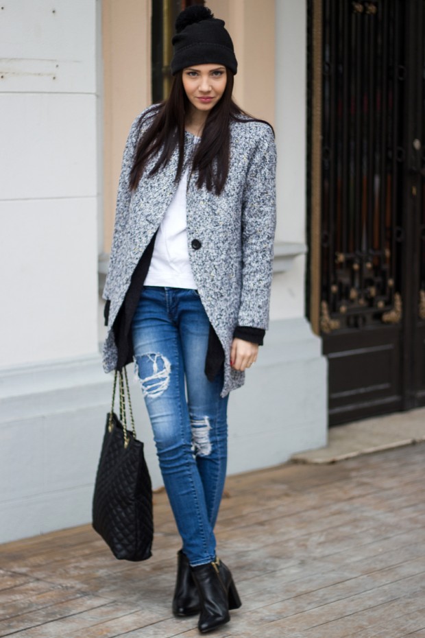 Beanies are perfect for cold winter days. They will keep you warm, will protect your hair from the cold weather and they will make you look stylish and unique. With varied fabrics, weights, and colors, beanies make incredibly versatile additions to one’s wardrobe. To make the beanie look sophisticated – wear this hat in a manner that will emphasize on the style that you want instead of being practical. Bright, neon colors will make you look younger and stylish, while brown, white, black, tan or gray will make you look sophisticated and chic. You can either choose to match them with your clothes, for example a suitable scarf, or you can choose a totally different color of your beanie and make everybody stare at it. Take a look at the following 27 stylish outfit ideas with beanie and cold days will never be boring again.